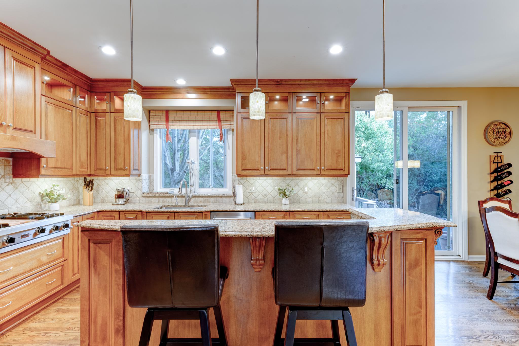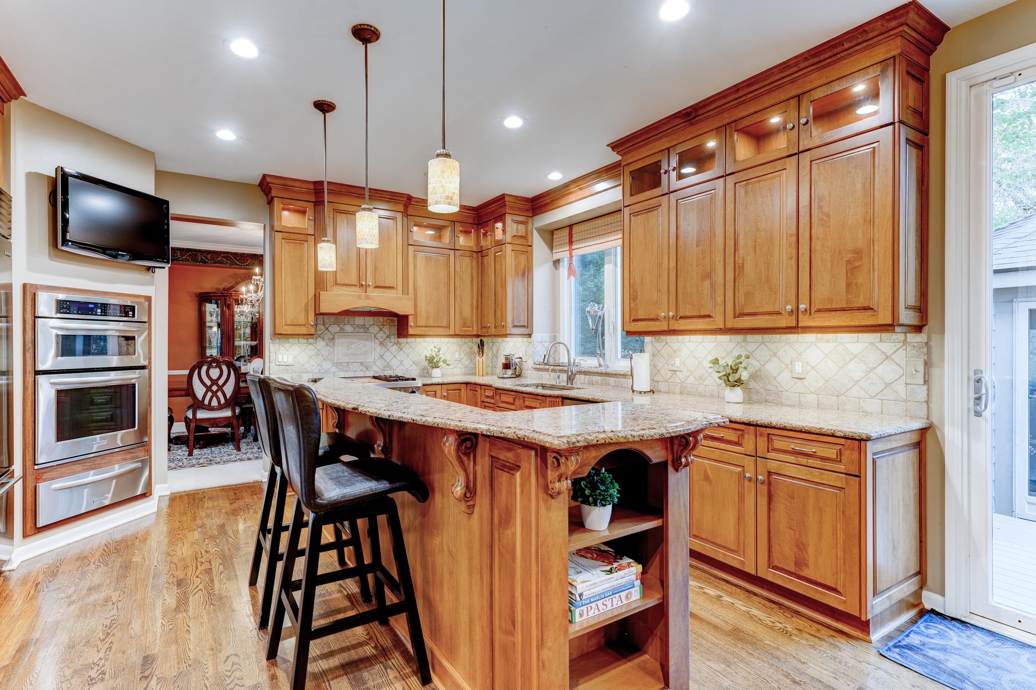 Inside, the home has been immaculately maintained with numerous updates and upgrades. The beautifully renovated kitchen is a chef’s delight, offering oak cabinetry, granite countertops, an under-mounted sink, tiled backsplash, stainless steel appliances, and a bright breakfast nook. The spacious family room and formal dining room create the ideal setting for gatherings, while large windows provide an abundance of natural light throughout.